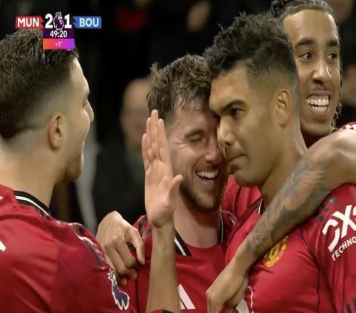 此役主场对阵伯恩茅斯,比赛上半场补时阶段,布鲁诺-费尔南德斯开出角球,卡塞米罗头球破门,帮助曼联取得2-1领先。
